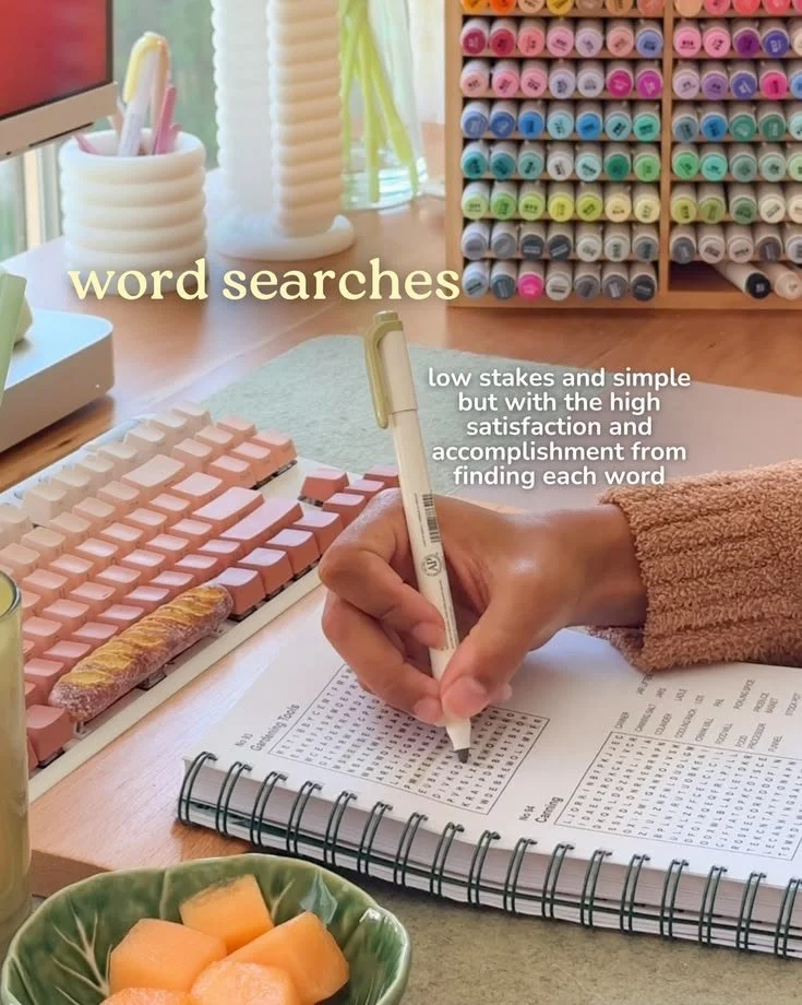 I love the nostalgic feeling of circling words and the quiet meditation that comes with scanning a grid of letters. It gives a tiny sense of accomplishment that feels very grounding after a busy morning.