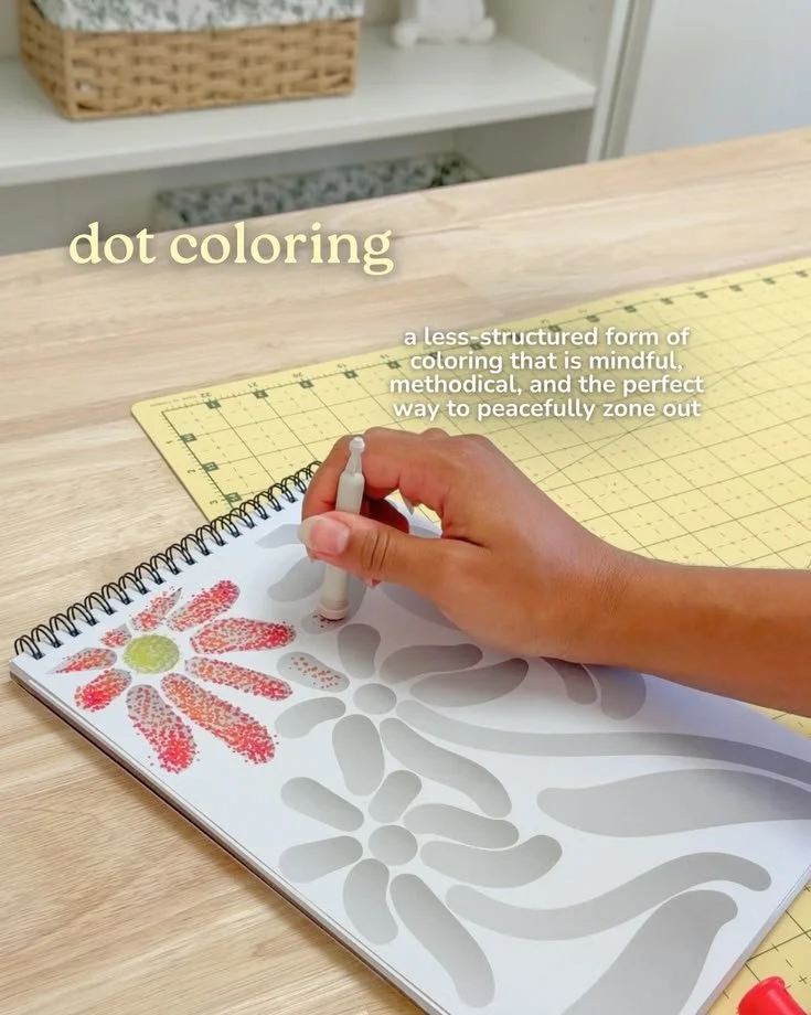 Using a stamp marker to create dots feels very mindful and less intense than traditional coloring.