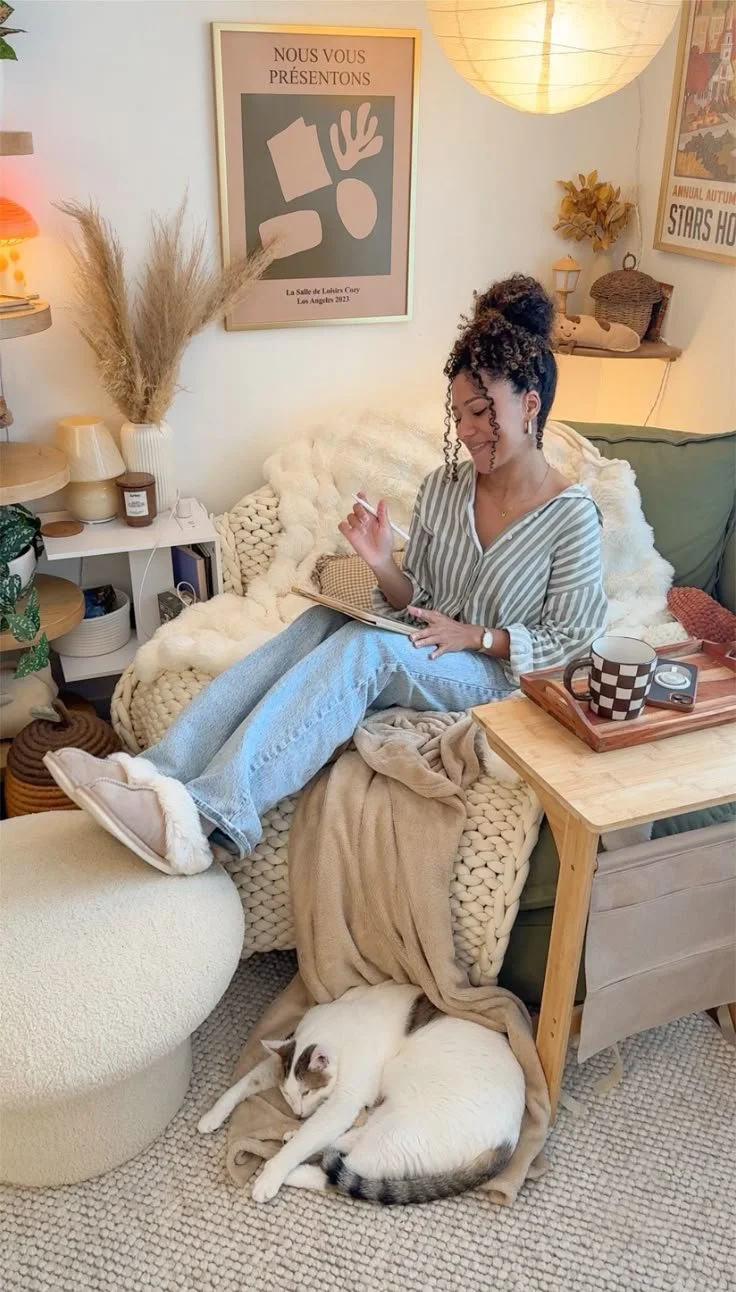 One of the softest ways to unwind. I love curling up with a blanket, putting on a slow, cozy audiobook, and letting someone else tell me a story.