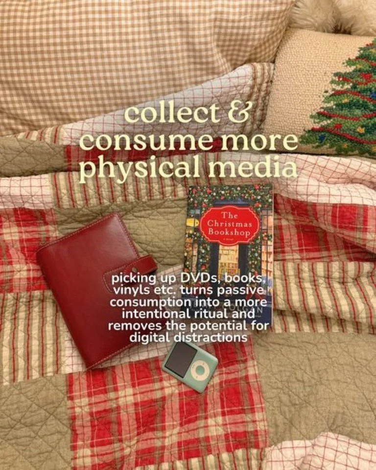 There’s something grounding about holding a book, flipping through a DVD menu, or playing a vinyl record. It slows you down in the best way.