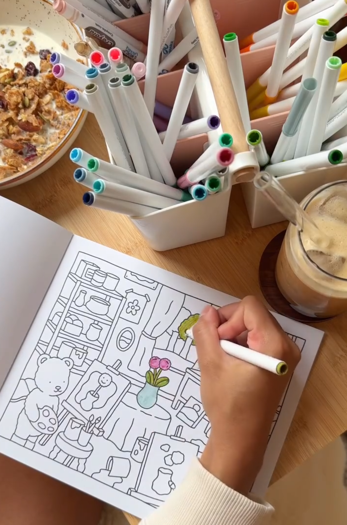 This is such a simple and happy way to be creative without needing to plan anything out beforehand. You can just grab a cute coloring book and pick out your favorite markers.