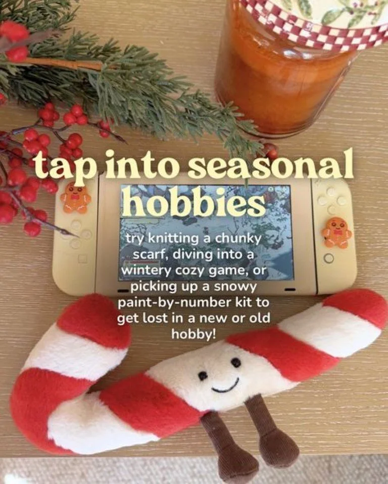 Cozy gaming, knitting, holiday coloring books… these are perfect low-pressure ways to stay creative while staying warm.
